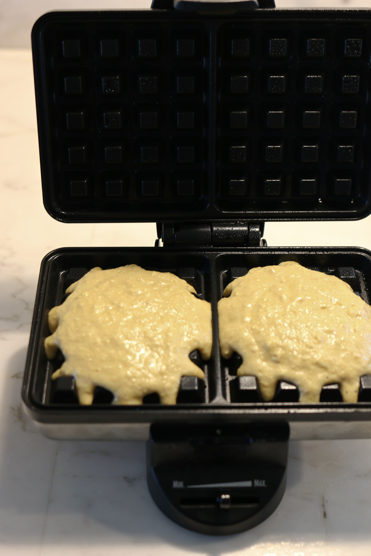 - Scoop the batter into the waffle iron, and close the iron. Cook for approximately 3-4 minutes, or as suggested in the appliance instructions.