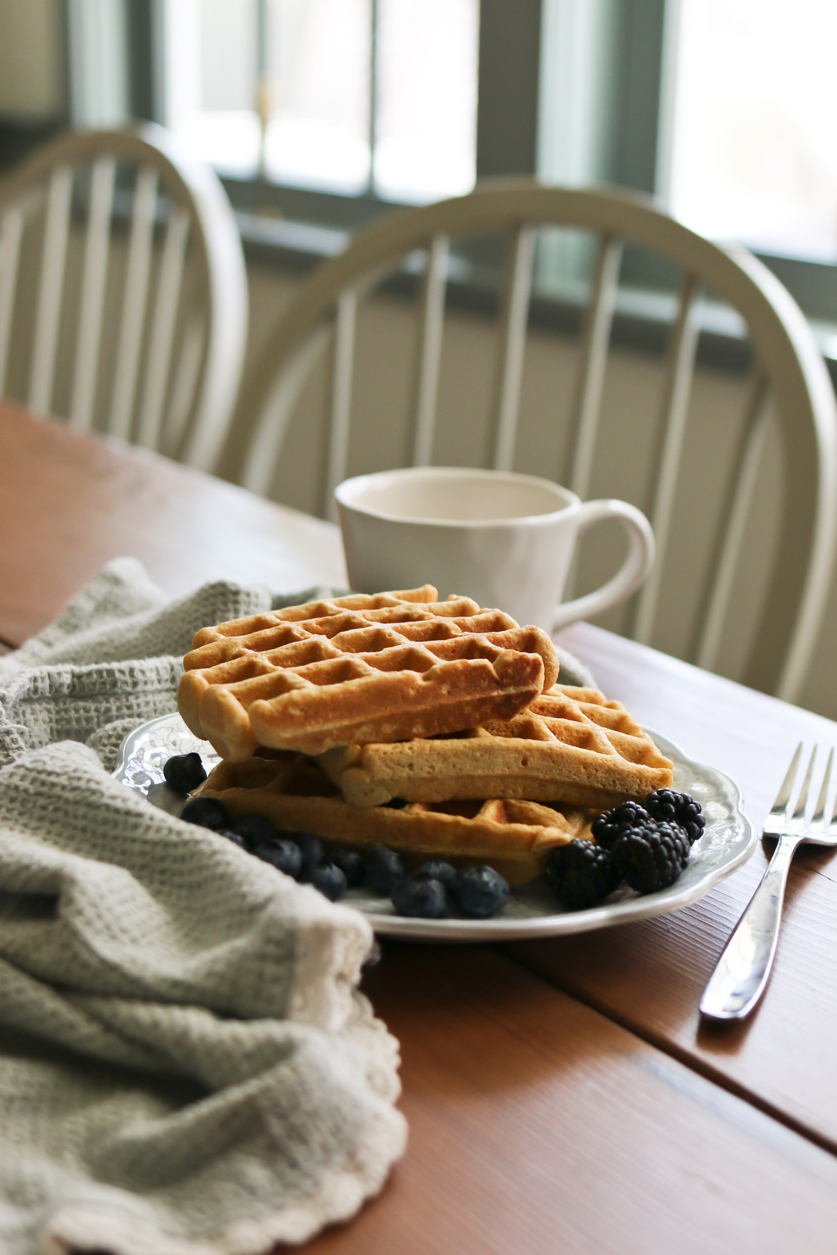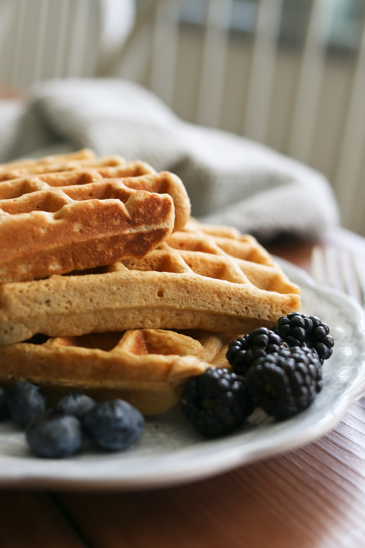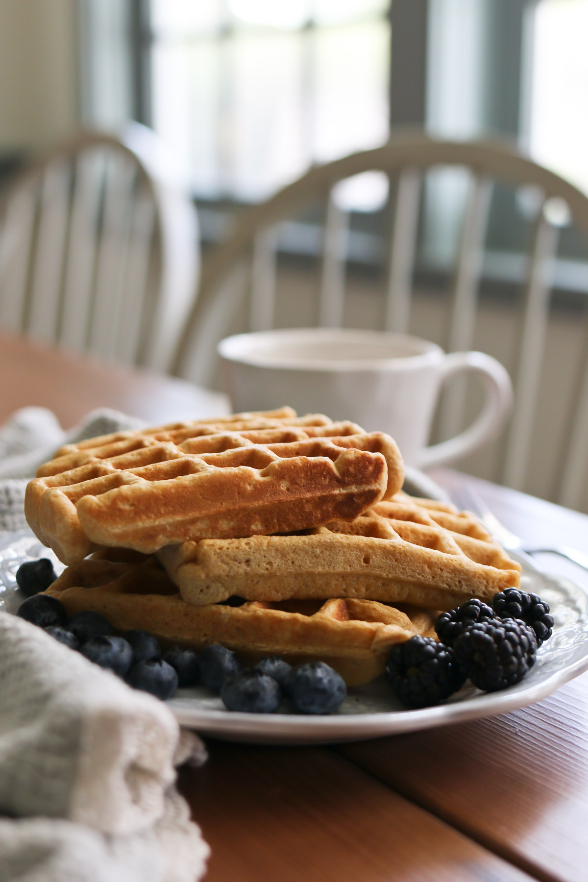 #2- The waffles must be made using this freshly milled flour recipe. No other waffle recipes that we’ve tried compare to this one. I’ve done lots of experimenting to get all the ingredients just right.